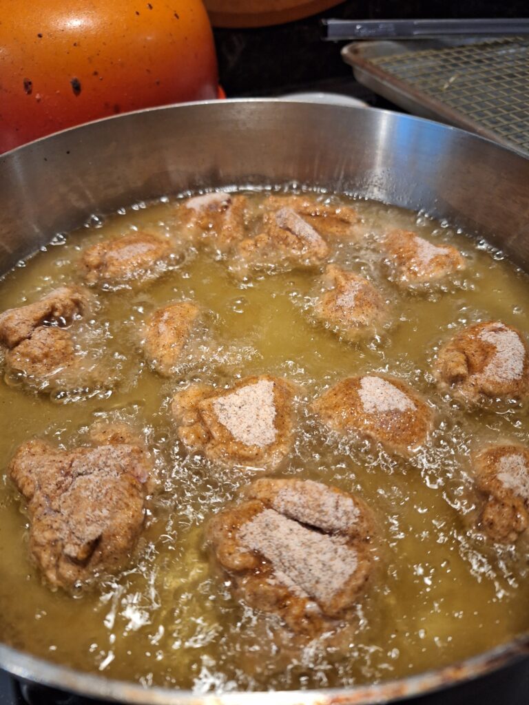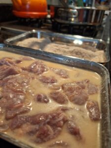 3. Heat 1″ of oil in a heavy skillet to approximately 350°.
