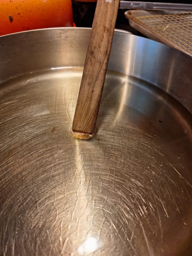 I often test the oil with a wooden spoon- if small bubbles form around it, you know you’re ready to fry.