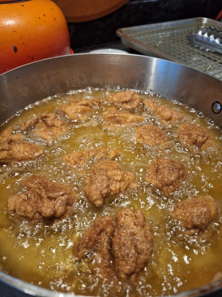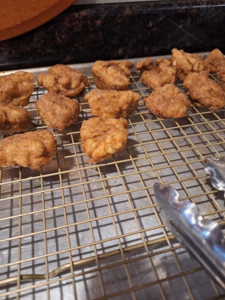 Allowing the nuggets to cool on a wire rack was also a helpful tip! It allows excess oil to drain, but it also allows for airflow around the nuggets so they don’t get soggy (unlike when I use the plate-and-paper towel method).