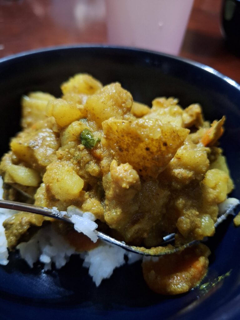 Knowing that many traditional Jamaican recipes use goat meat, we started with a recipe we knew we loved with chicken (Jamaican Curry Chicken) and substituted in cubed liver pieces for some of the chicken breast (left). The flavor was amazing, but the consistency was still not enjoyable. Despite the myriad of different meat and veggie textures in the curry, the liver was easy to pick out.