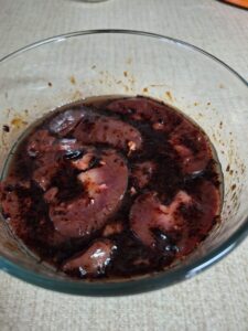 We have some experience with chicken liver– in our house it’s general viewed as “edible” when we soak in buttermilk, bread, and fry it. (But honestly, what isn’t edible when you fry it?) Since we don’t enjoy the spongy texture of smaller livers, we anticipated not enjoying the texture of larger ones, and unfortunately, we were correct.