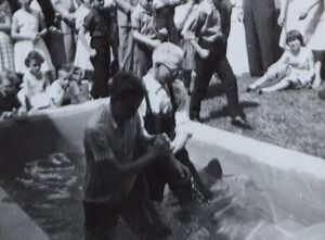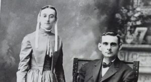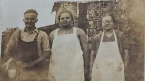 Five generations later, Abram Wolgemuth married and became a member of the Church of the Brethren- a group known in the 1700s as “Dunkards” for their understanding that immersion was the manner in which belivers should be baptized. He and his family farmed in Bareville, Pennsylvania; his wife Emma served as president of the “Farm Women’s Society No. 2” for 15 years.