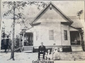 In 1909, Wesley Collier built a home on the 40 cleared (of 250 total) acres of land gifted to him by his father, Hiram McDuffy Collier. Wesley raised his family, including son Harvey, on the homeplace which stood until the early 2000s.