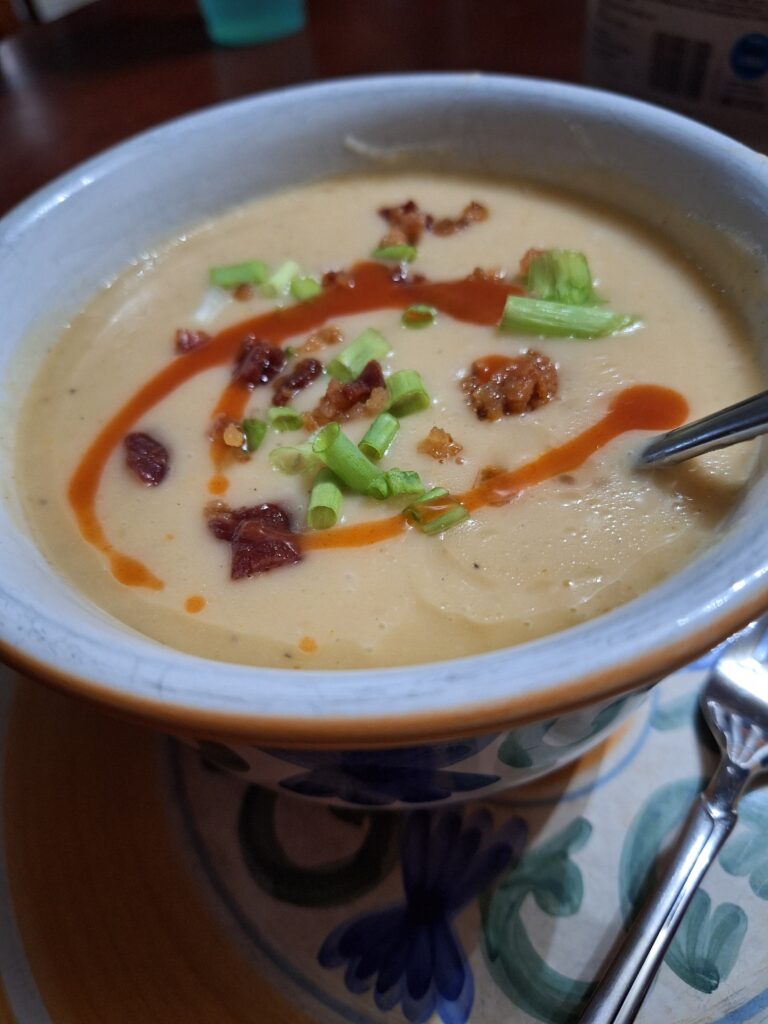 Tip: Bacon bits (or “chicken bacon”), green onion, and hot sauce are our favorite toppings for this soup!