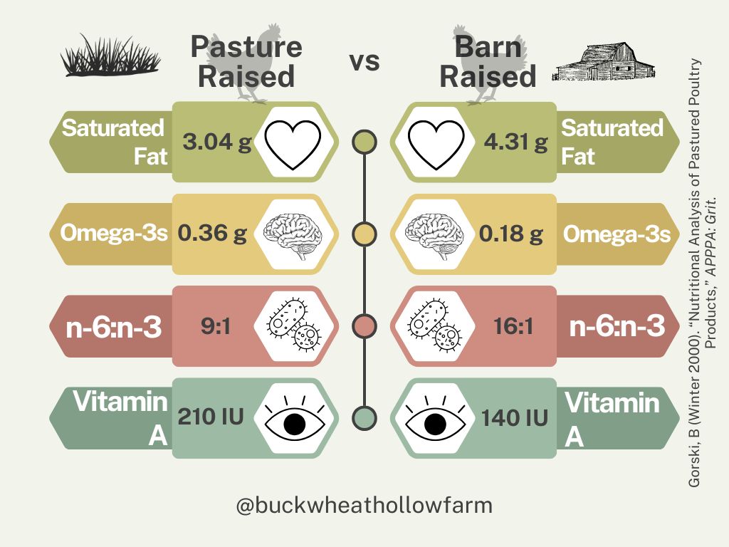 [3] Gorski, Barb (Winter 2000). Nutritional Analysis of Pastured Poultry Products. APPPA Grit. https://www.apppa.org/page-18106.